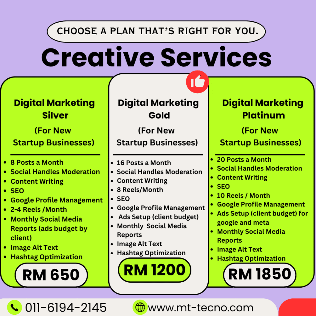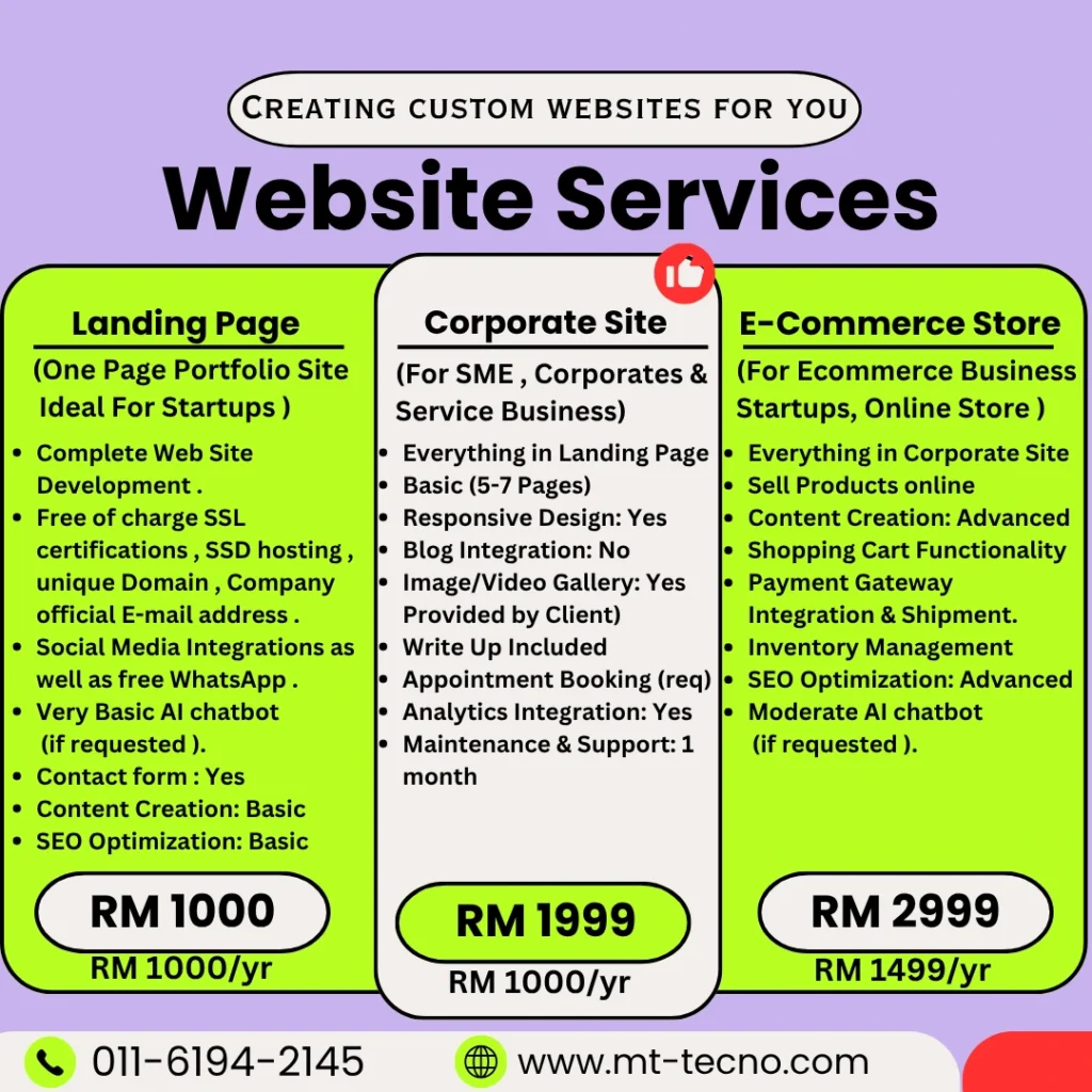 MT Tecno is a Malaysian digital agency and IT provider that provides complete online solutions for businesses of all sizes. Our services include website design and development, SEO services, social media management, digital marketing, chatbot development, content creation, UI/UX design, and branding.